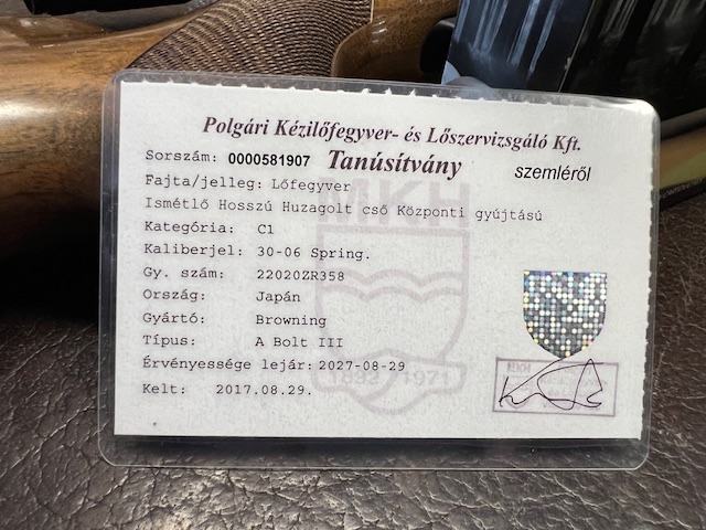 eladó egy Browning A-bolt III. vadászfegyver, 30-06-os kaliberben, fix szerelékkel, Leupold VX-3 3-09x50-es világító pontos céltávcsővel, 20 db lőszerrel.