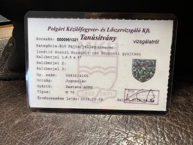Eladó egy Zastava M 70-es golyós vadász fegyver, 6,5x57-es kaliberben, Simsons 4-12x40-es céltávcsővel, acél szerelékkel.