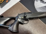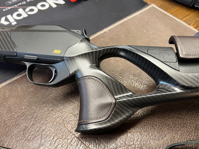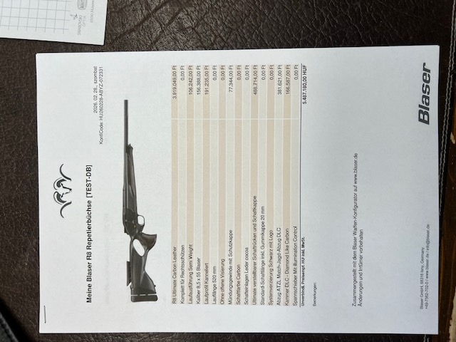 Eladó egy beszámított Blaser R8 Ultimate Carbon fegyver. Barna bőr betétek, állítható tushossz, állítható pofadék, ATZL sütés, DLC billentyű és zárfej, 8,5x55 Blaser kaliber, 52 cm-es semi weight bordázott cső, 17x1-es menettel. Carbon fegyverszíj.