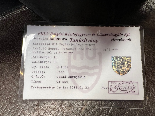 Eladó egy távcsővel szerelt CZ 550-es fegyver, 22-05-es kaliberben. A fegyver jó állapotú. Érdeklődni a tulajdonosnál lehet: +36302925268