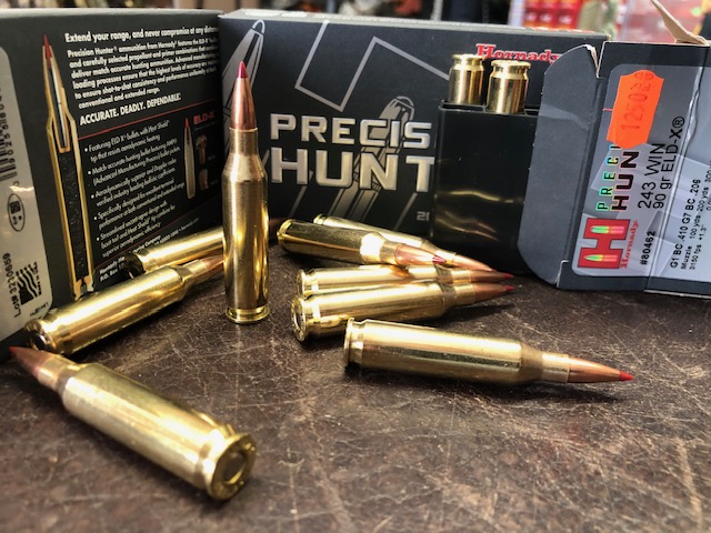 ELD-X, .243 WinA Precision Hunter lőszerek fejlesztése során a precíziós lövészetet és a vadászatot olvasztották egybe, a beültetett lövedékek mindegyike kiemelkedően magas BC-vel rendelkezik. Az ELD-X lövedéket hőálló tippel látták el, így távoli lövéseknél is garantált a pontos találat. A Tip becsapódáskor a mag belseje felé tolódik, ezzel segíti a gombásodást. Kapott egy InterLock gyűrűt, aminek köszönhetően irányított lesz az expanzió és megőrzi a mag tömegének 50-60%-t! Magsúly: 90gr (5,83g)